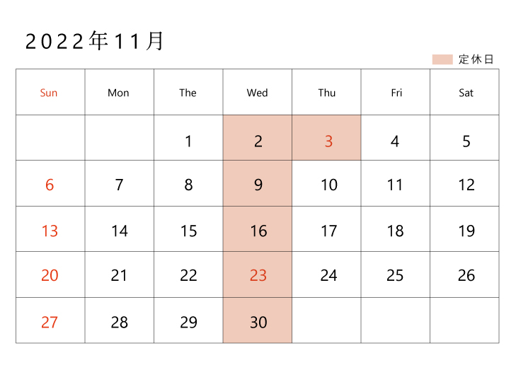 ※来年2023年度より毎週水曜・祝日に加え、第2火曜日も定休日となります。ご不便をお掛け致しますが何卒ご理解のほど宜しくお願い致します。