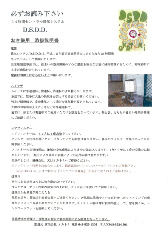 換気システムの製造元(有限会社オカトミ)ではフィルターのお掃除時期を半年に一度お知らせするサービスを実施しています。