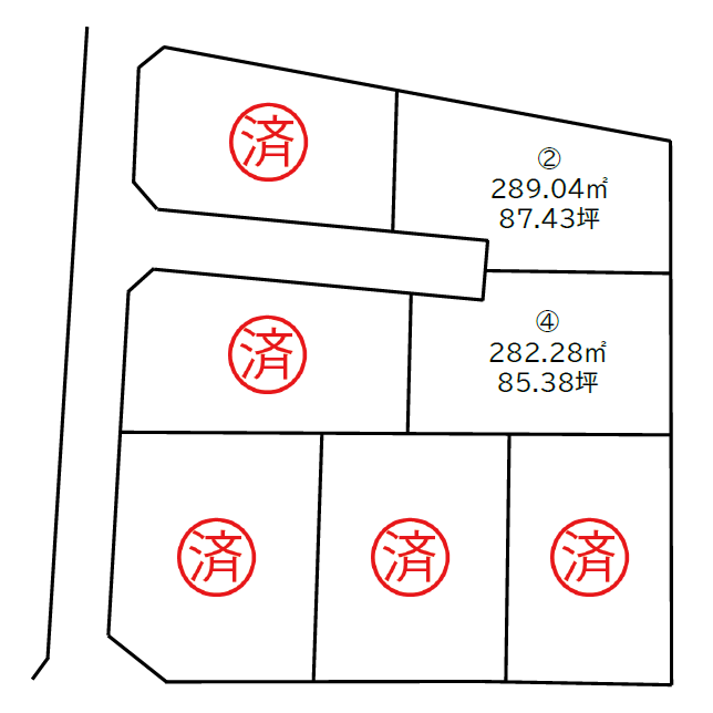 | 土地面積 | 282.28㎡(85.38坪)~289.04㎡(87.43坪) | 土地状況 | 更地 |