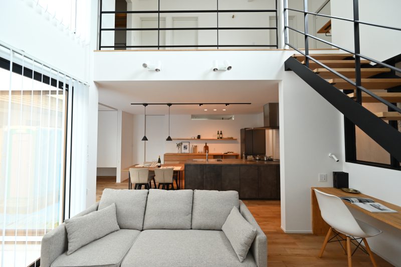すっきりとした印象の中に、キッチンや鉄骨階段がいいアクセントになっています。
