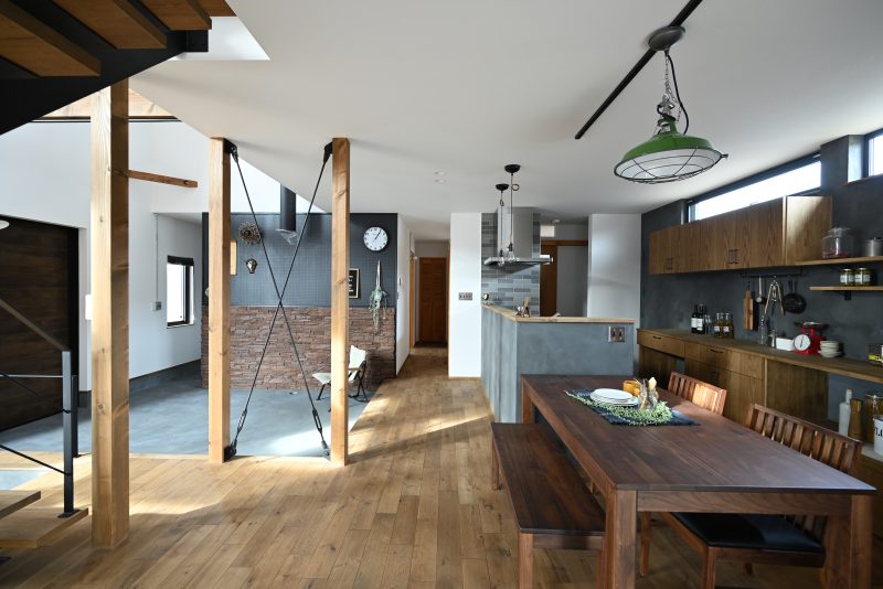 大きな鉄骨階段の存在感がカッコいい、アウトドアなお家が完成しました。