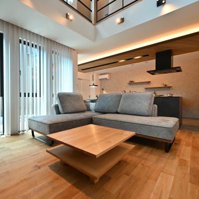 リビングには、吹き抜けからやわらかく光が落ち、ゆったりと時間が流れていきます。
