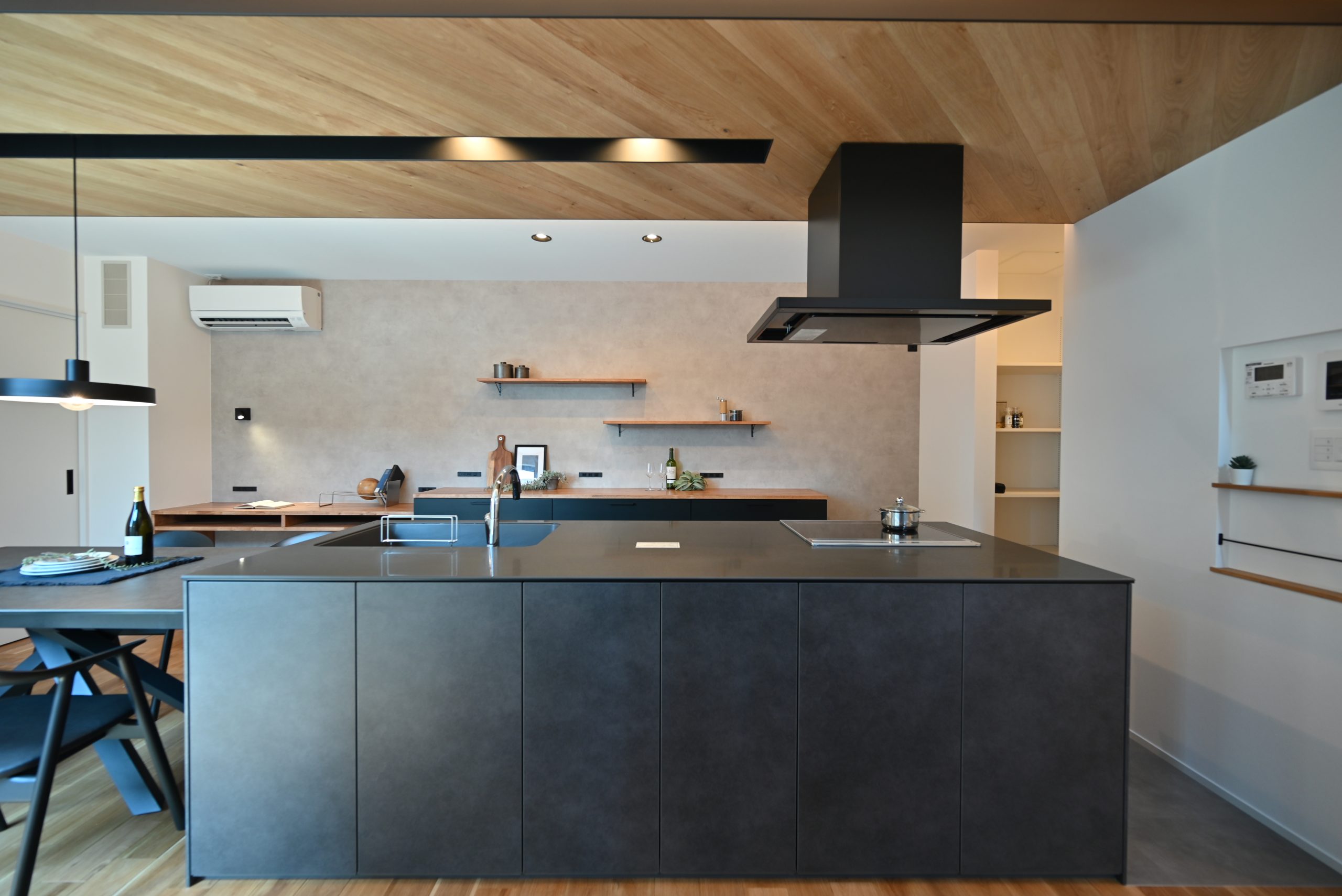 キッチンは、生活感を感じさせない美しい佇まいと、機能性のどちらも兼ね備えた設計。