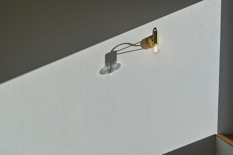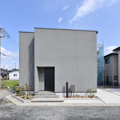 同一の壁色ながら、凹凸を利用し立体感を生み出したモダンな外観が美しいお家。