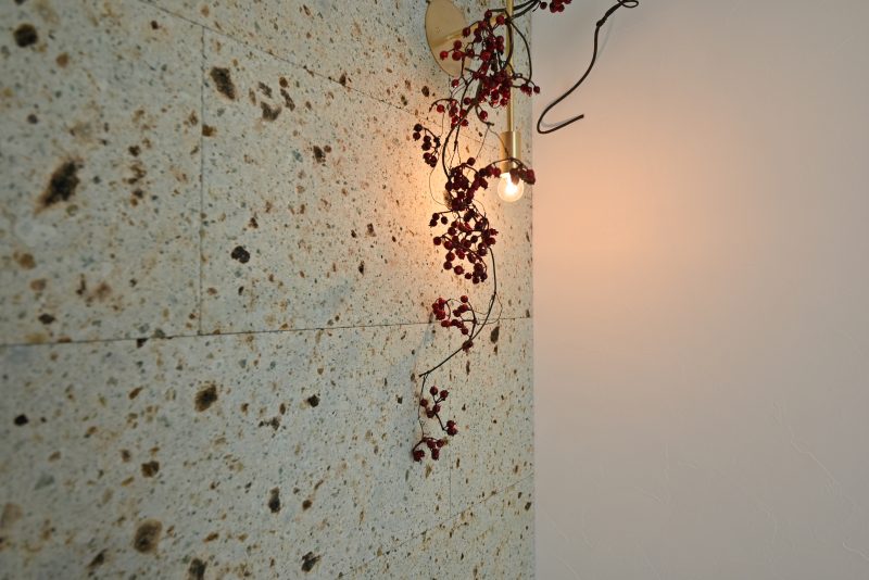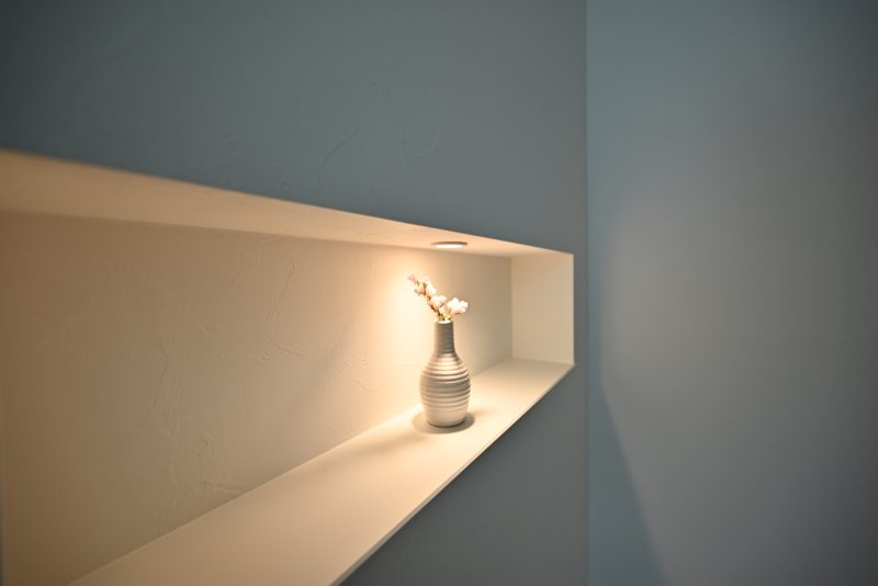 まるで美術館のようなニッチ。季節の花木を飾って、自然の彩を室内で。