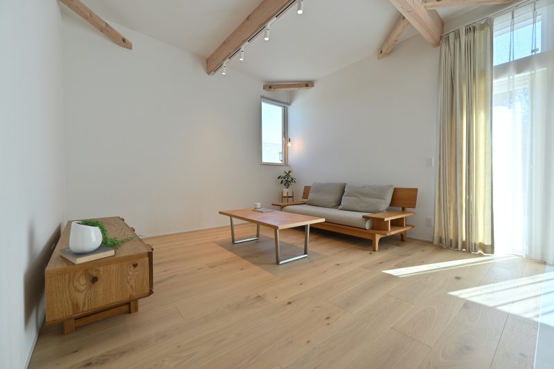 No.205光と天然木の北欧モダンスタイル。白い勾配天井で魅せる開放的な平屋
