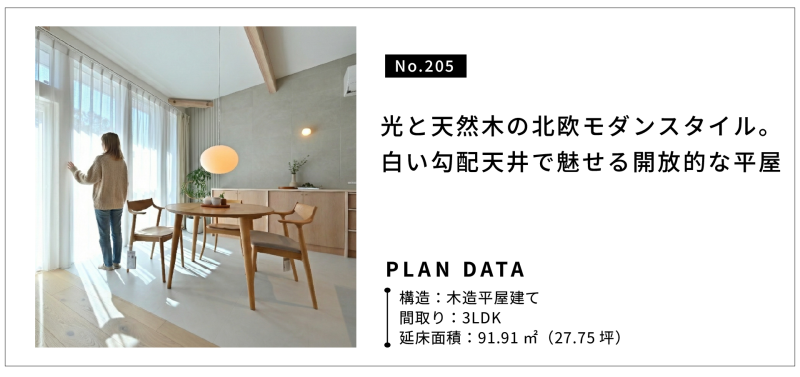 No.205白い勾配天井で魅せる開放的な平屋