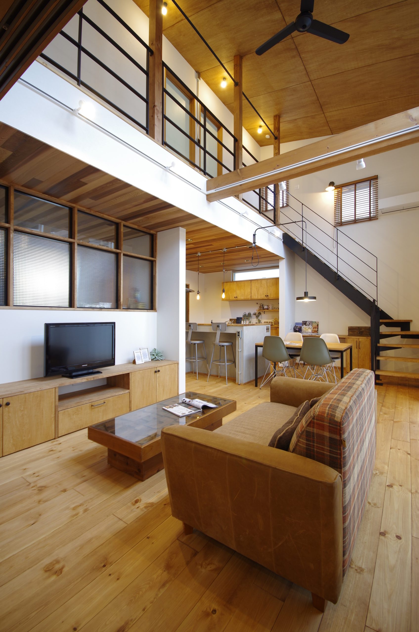 中は、無垢の床にアイアンやステンレスの無骨なテイストをを織り交ぜ、