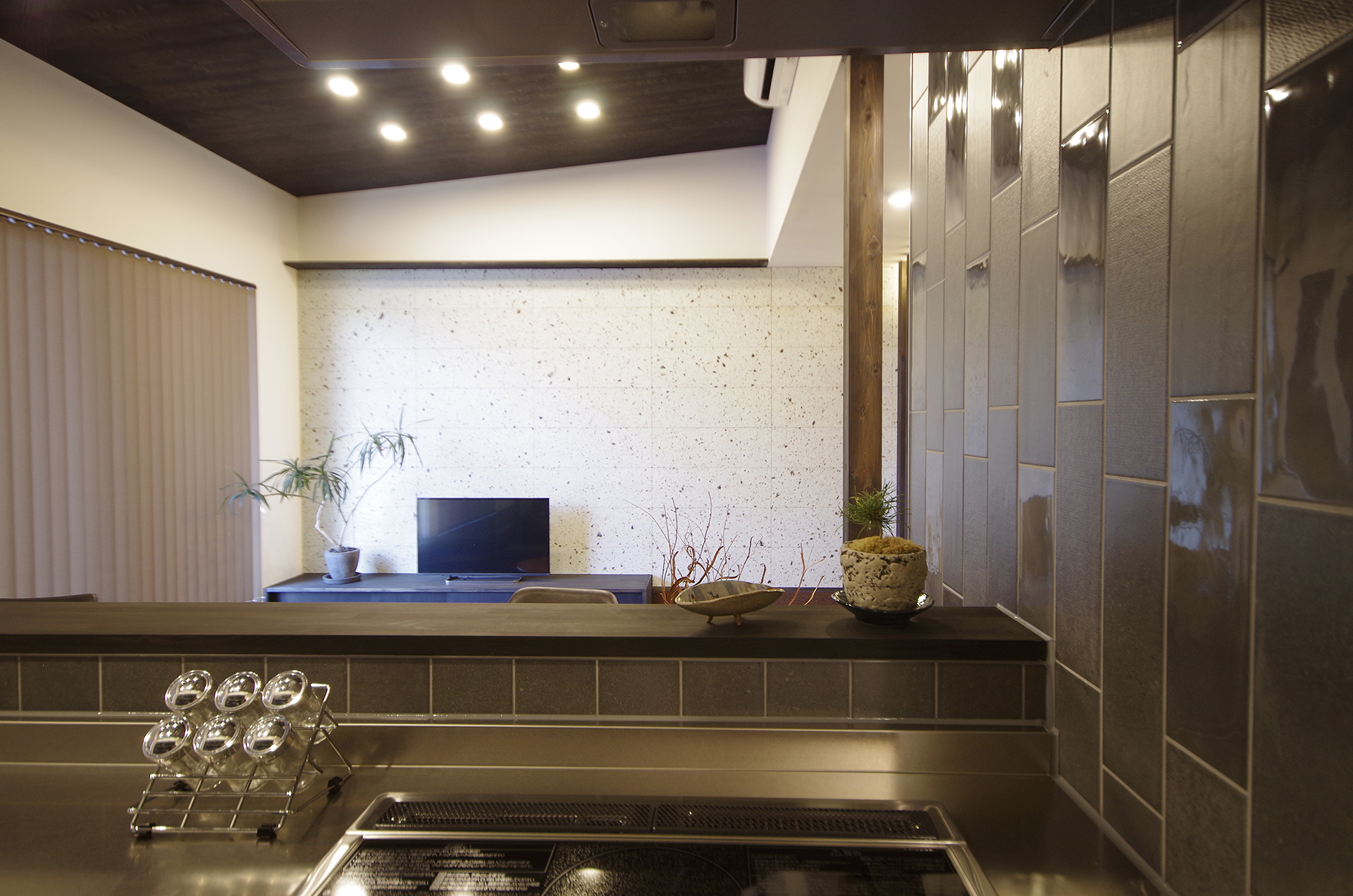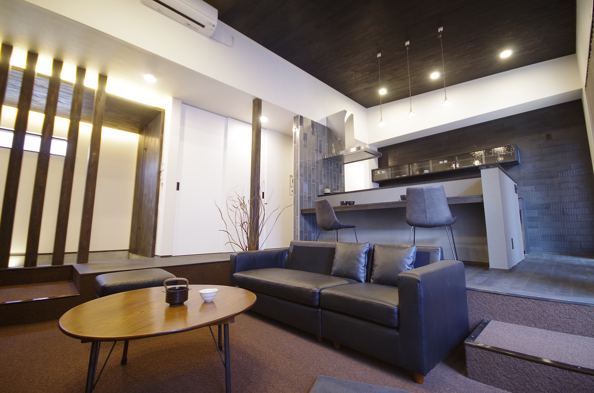 ・黒・ダークブラウン・グレーをメインとした大人な空間