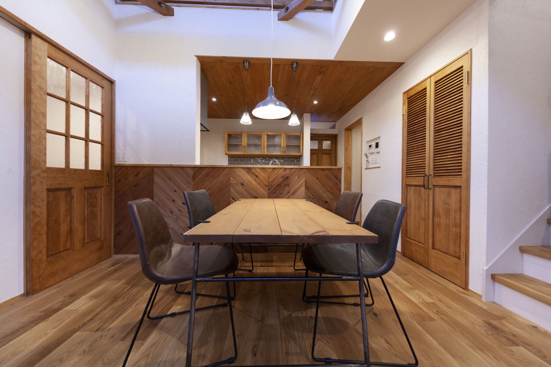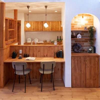 内観はちょっぴりアメリカンで、統一感のある温かみのある色合いの空間に。