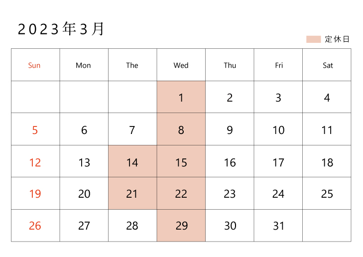【2023年3月】営業日のお知らせ
