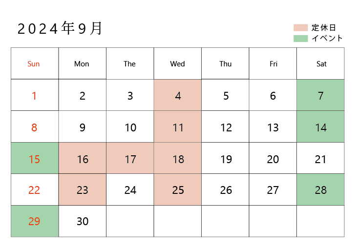 【2024年9月】イベント&営業日のお知らせ