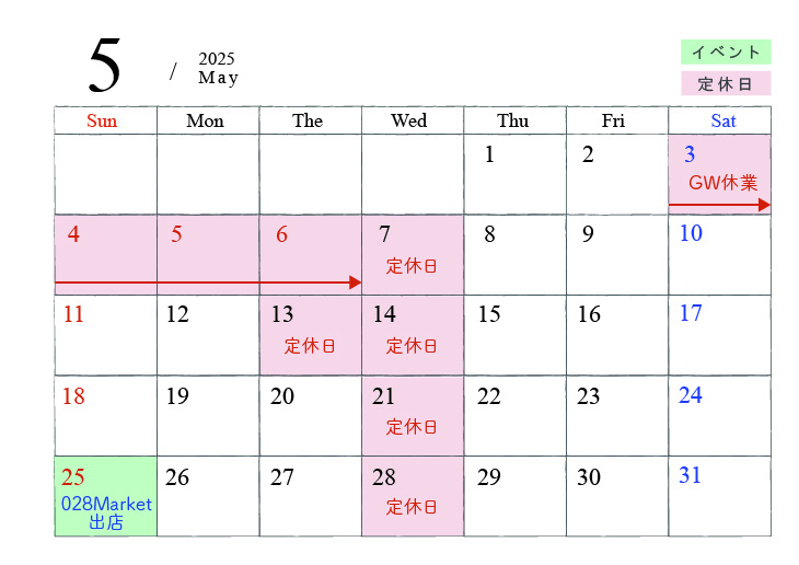 2025年5月K-LIVINGイベント&定休日のお知らせです。