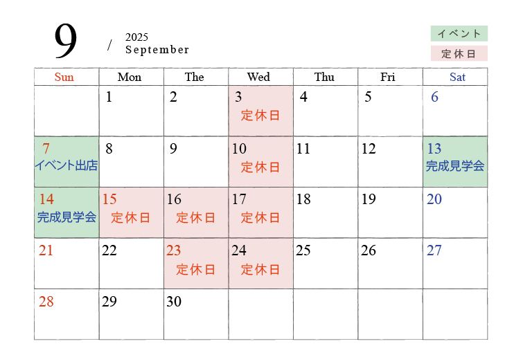 HOME > お知らせ > 【2025年9月】イベント&営業日のお知らせ