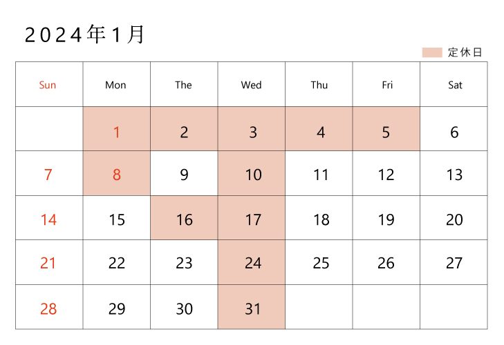 【2024年1月】営業日のお知らせ