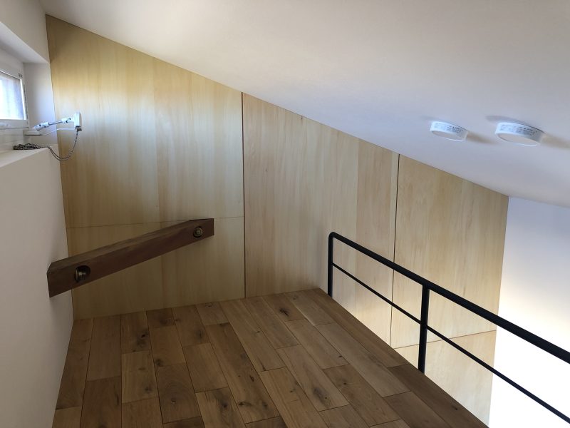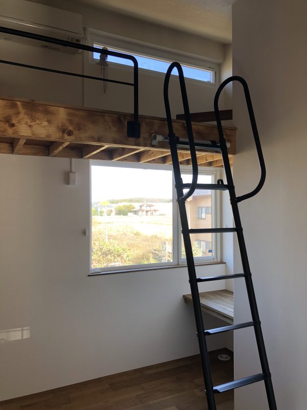 勾配天井の高い部分をロフトにして、今ではそこでお兄ちゃん一人で寝ています。