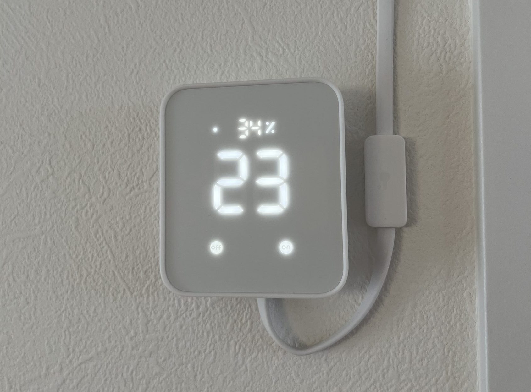 SwitchBotというメーカーのHUB2という≪色々な物のリモコン代わりになる温湿度計≫と、