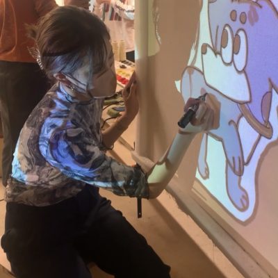 自分がデザインをしたものをプロジェクターで写しながら下書きをします。