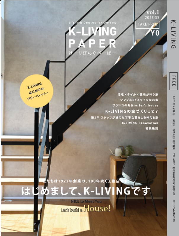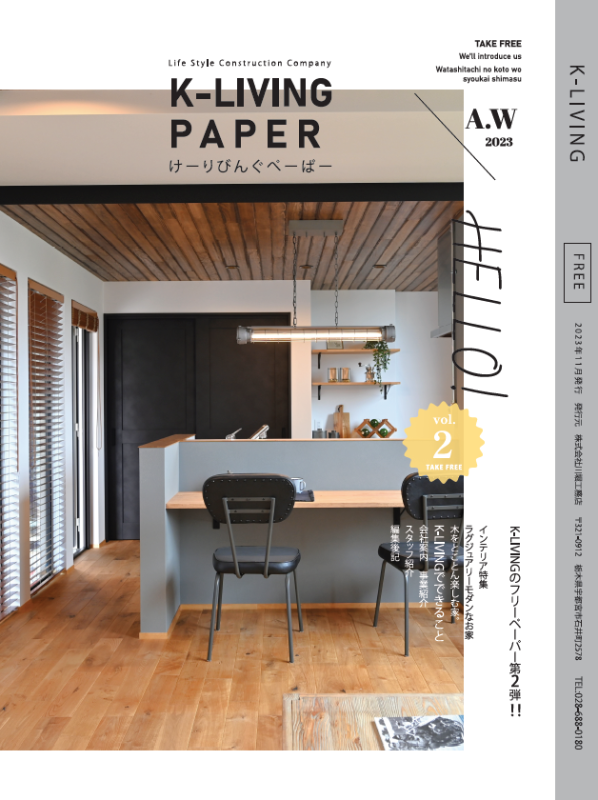 中身は、お客様へのインタビュー内容やK-LIVINGについて、スタッフの小口さんちのドキュメンタリーを文面にして。