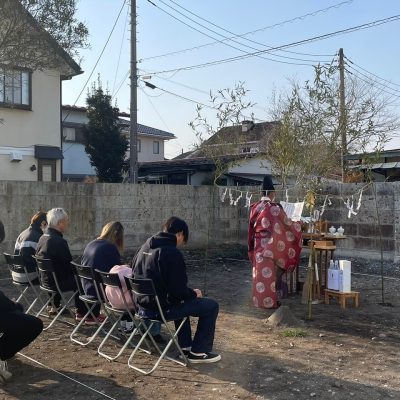 お家づくりの着工の前に、氏神様に工事の安全と土地の利用許可を得るために