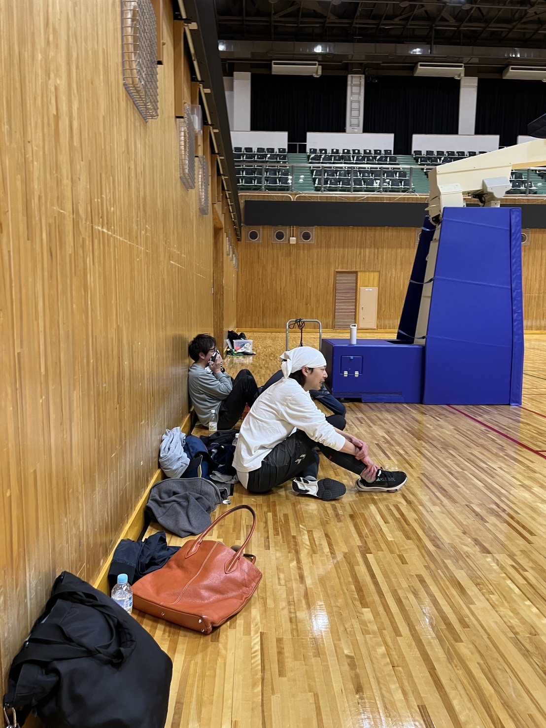 ブレックスアリーナなのに、観客もいないしコートもできてないですね…