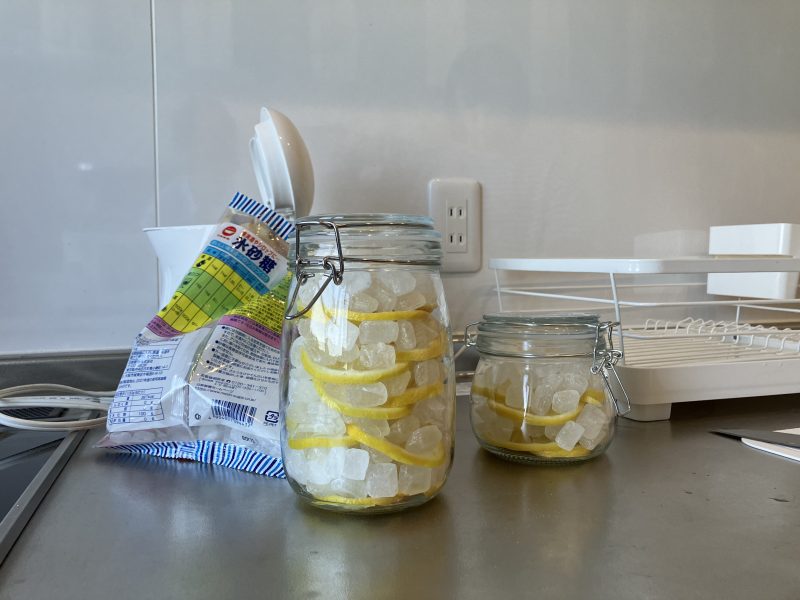 氷砂糖と輪切りのレモンを交互に入れて出来上がり!