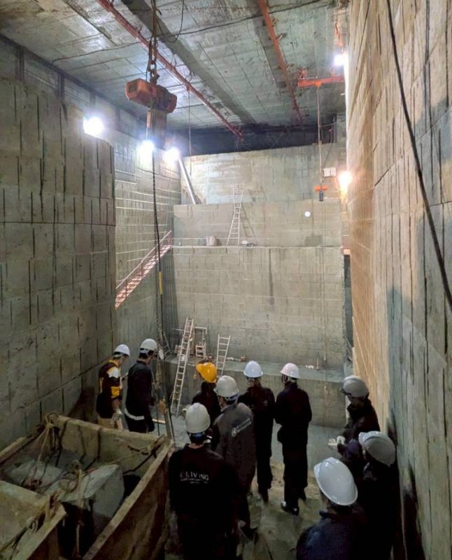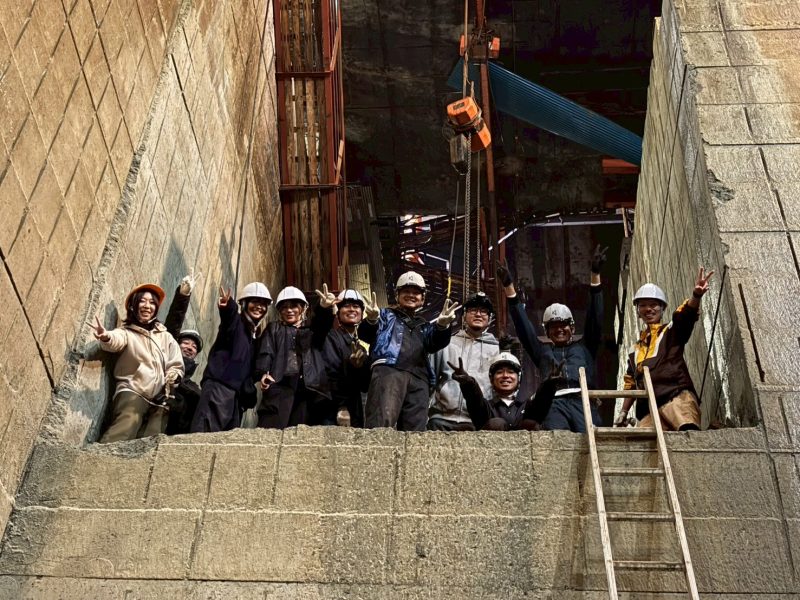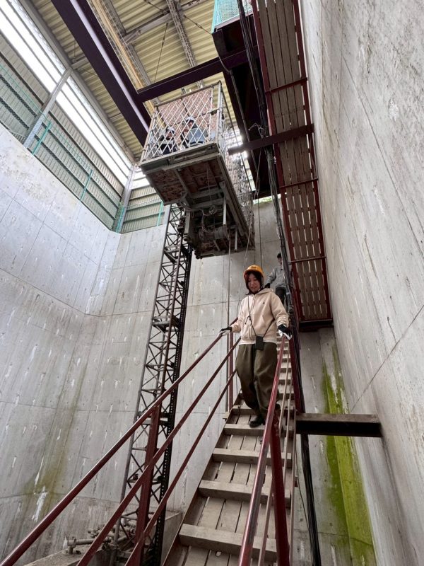 説明のあとは、いよいよ地下へ。なんと地上から50メートルも下へ降りていくんです!階段とエレベーター組に分かれておりました。