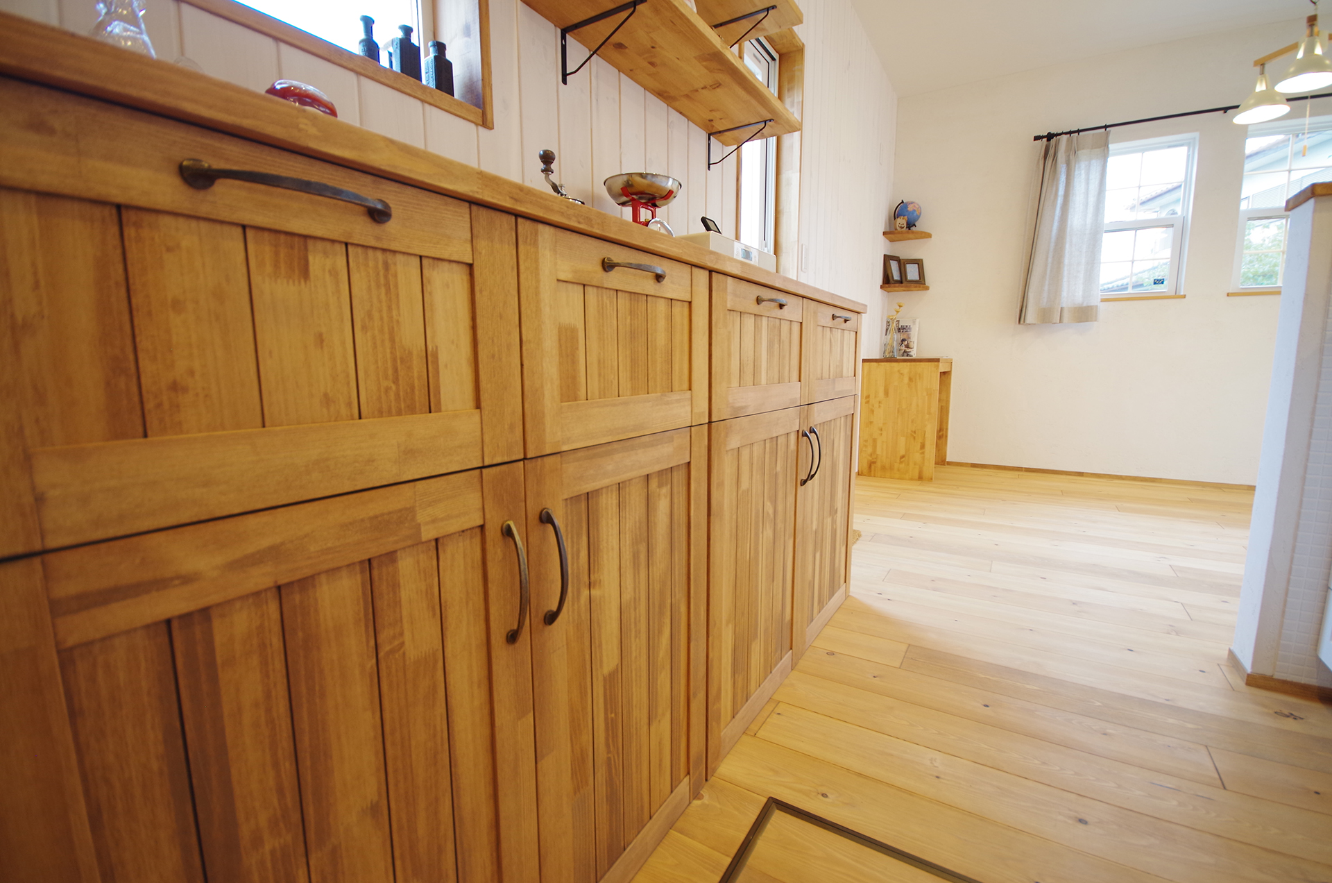 例えば、かっこいいお家のテイストだとアカシア材。可愛いお家のテイストだとパイン材と