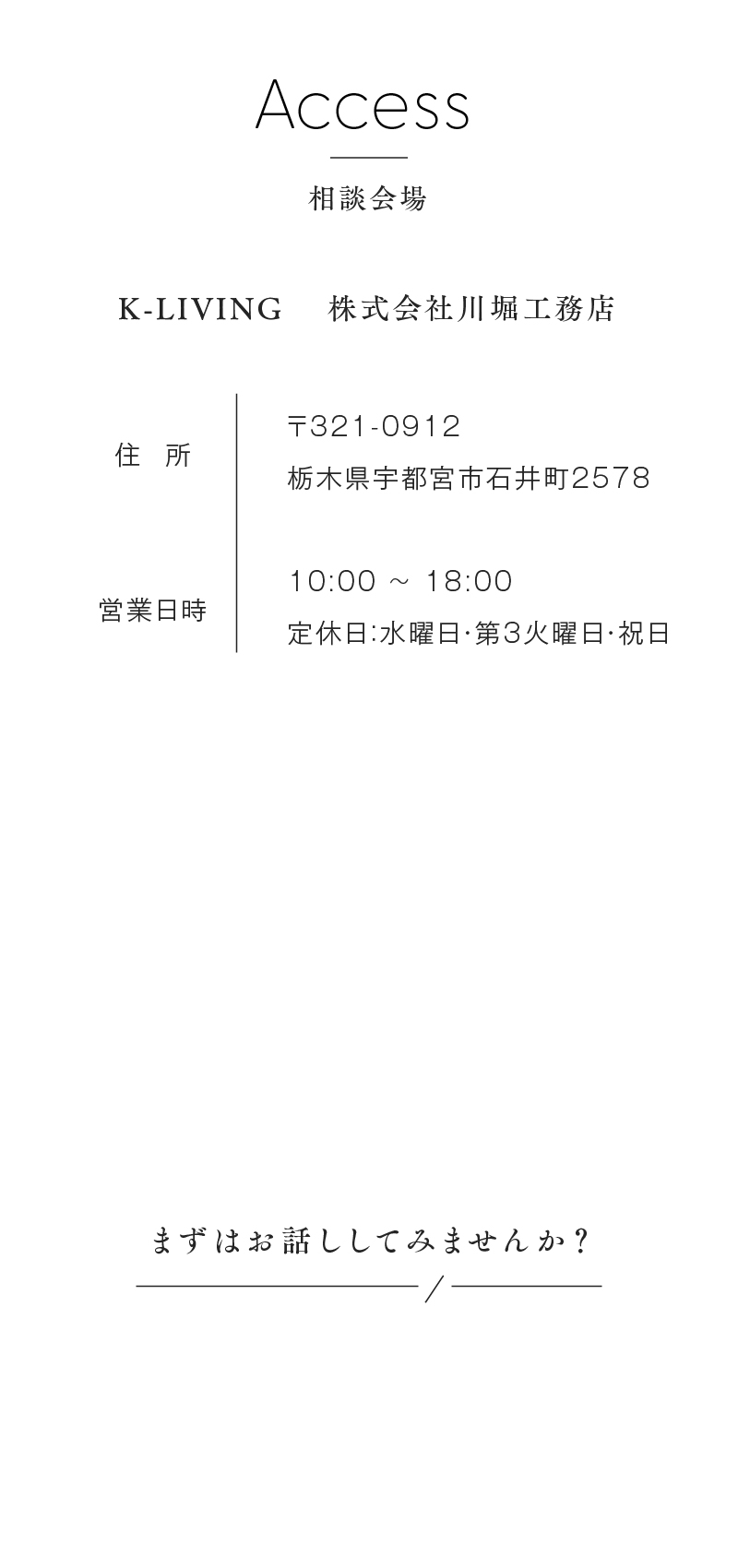 *は入力必須です ご用件 * ご相談資料請求 地域密着型工務店のため、資料請求は【栃木県にお住まいの方】【栃木県に建築予定の方】に限らせていただきます。 来場希望日 時間を選択10:00~13:00~16:00~ 時間を選択10:00~13:00~16:00~ ※ 当日・前日のご来場に関しましては、お電話にてご相談ください。 住所 都道府県北海道青森県岩手県宮城県秋田県山形県福島県茨城県栃木県群馬県埼玉県千葉県東京都神奈川県新潟県富山県石川県福井県山梨県長野県岐阜県静岡県愛知県三重県滋賀県京都府大阪府兵庫県奈良県和歌山県鳥取県島根県岡山県広島県山口県徳島県香川県愛媛県高知県福岡県佐賀県長崎県熊本県大分県宮崎県鹿児島県沖縄県 下記を確認してください 弊社の個人情報保護方針を確認する 個人情報保護方針に同意します